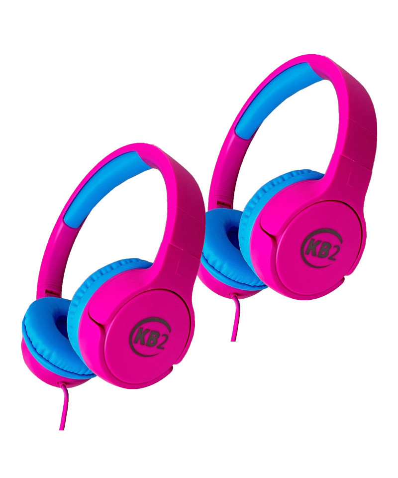Volume limits over 85 dB are known to cause hearing loss over time. Our unique headphones protect your kid's ears, yet deliver studio grade sound. Crafted with 40 mm custom dynamic drivers, we recreate the best sound you have ever heard into a headphone experience. The aluminum used in the ear cups and headband insure that the KB2 headphones will last far longer than competing products made from cheap plastic. It also makes them lighter and gives them a higher quality look and feel. Our soft and supple ear cushion design provides amazing comfort while also attenuating 92% of sound at 1 kHz. There is no need to turn them up to a dangerous level even when in a noisy environment like an airplane. We've wrapped our ear pads and headphones in a specially designed soft-touch material, providing unparalleled comfort for your child. Every detail is made with kids in mind, from the cozy ear pads to the snug fit. Prepare for smiles, because your child's comfort is our top priority. Sold as a pack of 2 headphones.