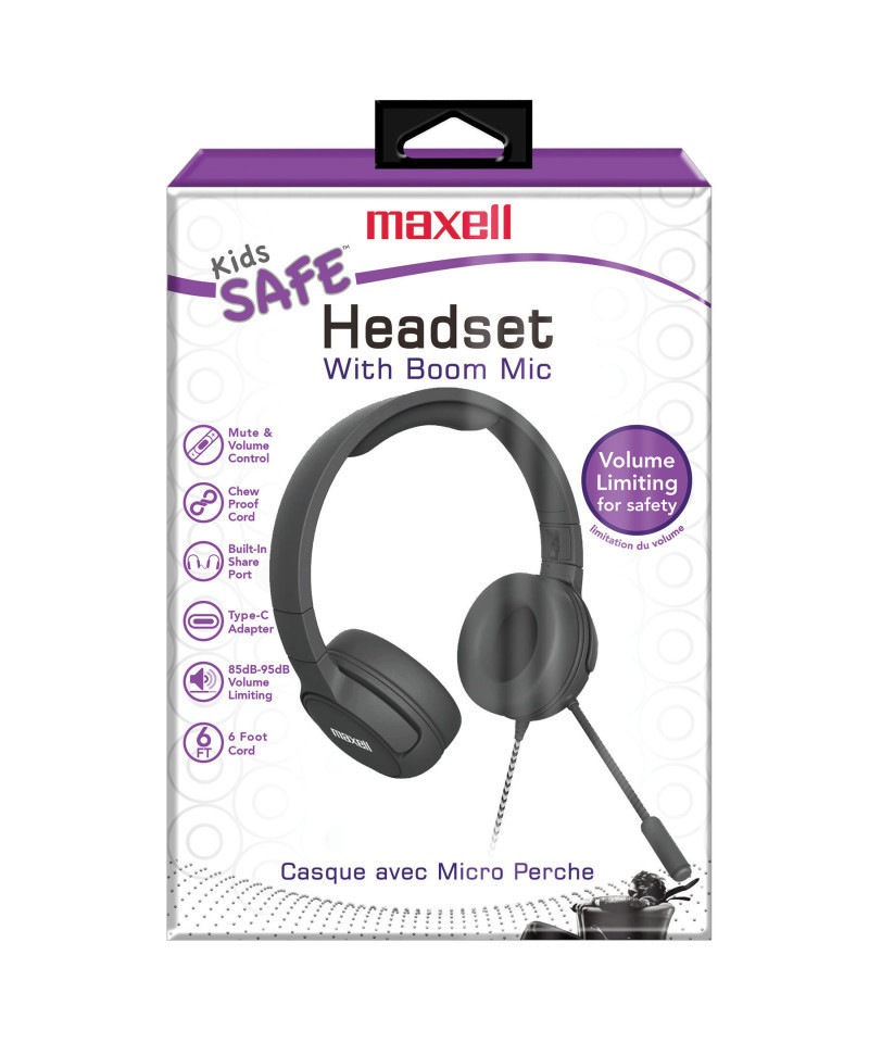 The Maxell Volume Limiting Headphones for kids are designed with both safety and functionality in mind, providing an ideal audio solution for young learners. The full cup wired design ensures comfort while the 3.5mm jack and Type-C adapter offer versatile connectivity for a range of devices. With a safe maximum listening level of 95 decibels, these headphones protect young ears from harmful noise levels. Additional features include an attached boom microphone with built-in mute and volume control, allowing for clear communication during lessons or gaming. The sturdy, flexible design is built to withstand the wear and tear of daily use, with a 6ft chew-proof cord that ensures durability. Whether for classroom learning or leisure, these headphones offer a perfect blend of safety, comfort, and convenience.