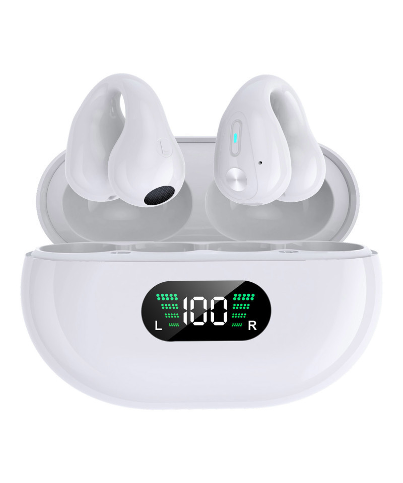 Experience next-level comfort and innovation with these Clip-On Wireless Earbuds, designed for a pain-free and secure listening experience. Unlike traditional in-ear headphones, these unique suspension-style earbuds clip gently onto your ears—no insertion needed—eliminating ear canal pressure, discomfort, and potential hearing damage. Perfect for running, workouts, and outdoor activities, the ergonomic ear hooks ensure a stable fit that won't slip, even during intense movement. Powered by advanced Bluetooth technology, these earbuds instantly auto-pair with your device for seamless connectivity and crystal-clear audio. Enjoy up to 18 hours of total playtime—5 hours on a single charge plus 2.5 extra recharges from the case, all easily monitored with the built-in digital display. Crafted from lightweight, skin-friendly materials, these open-ear style headphones allow for all-day wear without pain or fatigue. With intuitive touch controls and broad compatibility across Bluetooth-enabled devices—including iPhone, Android, laptops, and smartwatches—these clip-on earbuds deliver effortless, high-performance audio wherever you go.