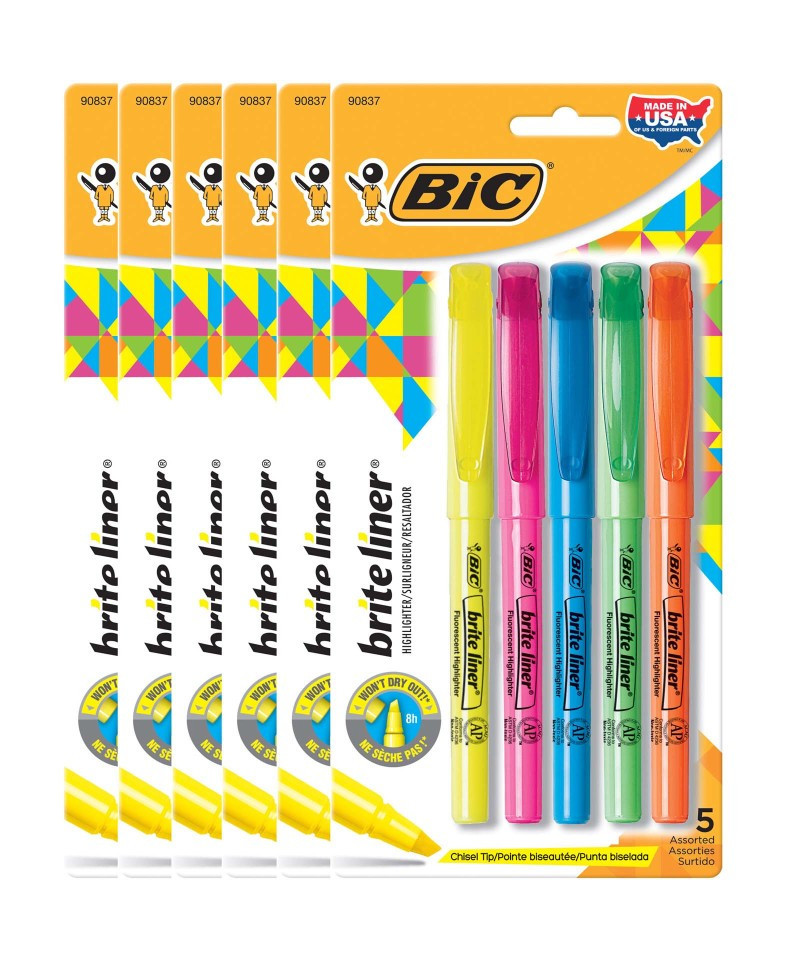 - 5 per pack, sold as 6 packs, 30 highlighters total