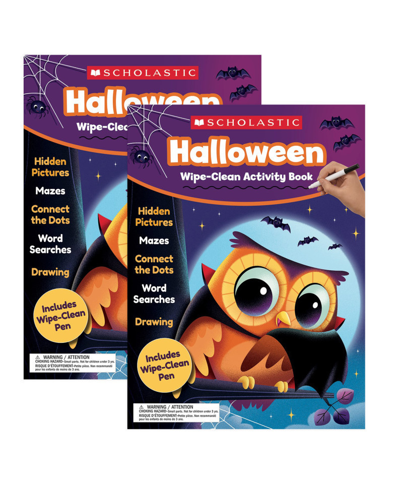 A book that's a trick and a treat? Yes! This colorful wipe-clean activity book tricks kids into learning with 56 pages of mazes, connect the dots, word searches, hidden pictures, and more that are a real treat to complete. It's a spooktacular good time that helps kids develop key skills they'll need in school. Sold as a pack of 2 identical activity books.