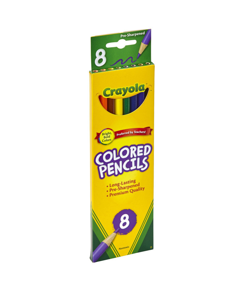 Colored pencils are an indispensable tool at home and in the classroom, ideal for creating and coloring maps, completing art or science projects, and making signs and labels. Crayola Colored Pencils have an easy-to-grip design for better control and are made with a thick, soft core, so they won't break easily under pressure. Kids will love to use these durable, vividly colored pencils. Small enough to fit in a book bag, this portable box holds a variety of colors. The smooth colors are perfect for color mixing and blending as well as for practicing more detailed techniques. Crayola Colored Pencils are created from reforested wood instead of wood from old-growth forests. For every tree used in the manufacturing of Crayola Colored Pencils, a new tree is planted. Includes Crayola Colored Pencils, 8 Count.