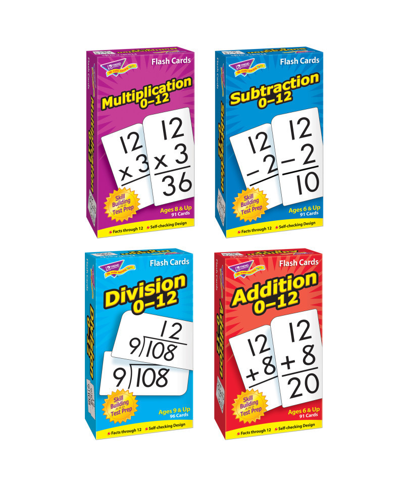 Content-rich math cards do their job, teaching students new skills in a fun way. This educational aid develops basic multiplication skills 0-12. Self-checking, answers on card backs. Sturdy cards and storage box. Students will delight in mastering new skills. No-see-through cards with quick-sorting, rounded corners. 91 cards, 3" x 6". For ages 8 and up.