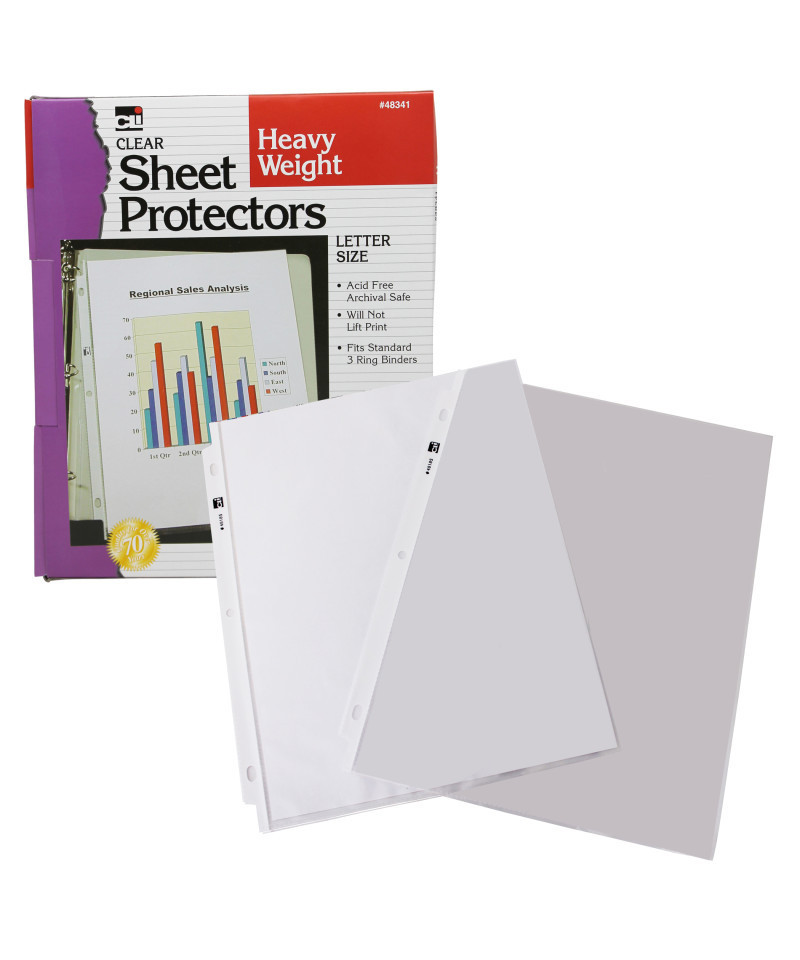 Top loading polypropylene sheet protectors provide archival quality protection for permanent storage of your materials. No sheet punching is necessary so documents remain in their original condition. Will not lift print. Letter size. Each box includes 100 sheet protectors.