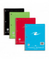 One subject wirebound notebook. Smooth, white, 15lb writing paper is wide ruled with a red margin line. Covers are printed on bright board in 4 assorted colors (no color choice). Wire ends are coil-locked for snag-proof performance. Each book is 10.5" x 8" and contains 70 sheets of writing paper. Proudly made in the USA.