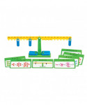 The Number Balance Activity Set is an excellent hands-on equivalence tool to show children number relationships and number operations. Self-checking math balance makes learning number concepts easier because kids can see the results. Place weights on a number or combination of numbers on one side and find an equivalent number or combination of numbers on the other by balancing the weight. Display a variety of concepts such as greater than, less than, equal to, and basic operation skills. Number Balance may be used to teach addition, subtraction, multiplication, division, fractions, as well as gain insight to abstract number and operations concepts, algebraic equations and more. The number balance relies on the principle of equivalence. Weights are placed on either side of the fulcrum or pivot point. If a weight is placed on the peg marked 8 on the right arm of the balance then it may be 'balanced' by placing a weight on 6 and another on 2 on the left arm of the balance. The equation 8 = 6 + 2 is formed. Six may be balanced with 5 and 1, and by placing two weights on 3. This balance idea may be extended into early algebra! Set includes 10 double-sided colorful activity cards. As kids become familiar with basic number concepts, the number balance may be used to learn about addition and particularly about the commutative property of addition, that is 6 = 4 + 2 and 2 + 4 = 6. Links to equations such as 2 + 2 + 1 + 1 = 4 + 2 may be made. The ideas of greater than and less than may be explained using a number balance. Subtraction, multiplication and division may all be explained using a number balance. Later early algebra concepts may be introduced. Balance measures 14" long and 5" high. Includes 1 plastic number balance, 20 hanging weights, and 20 double-sided activity cards.