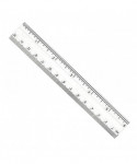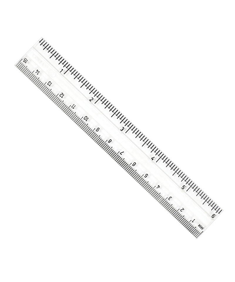Durable plastic rulers feature double beveled edge with pencil groove. Raised calibrations show 1/16 inches on one edge, millimeters on the other. Holes allow for storage in ring binders. Clear plastic.