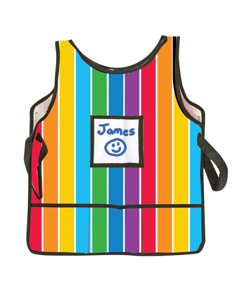 Creative kids can stay neat and clean in this durable art smock! Features a write-on chest pocket to personalize with dry-erase marker, an easy-clean apron surface and roomy storage pockets. Adjustable straps mean one size fits all!