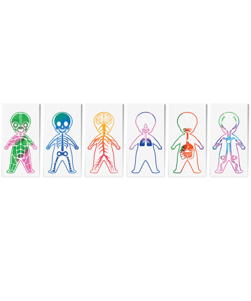 - Explore human anatomy with "blank" sheets revealing the organ systems.`