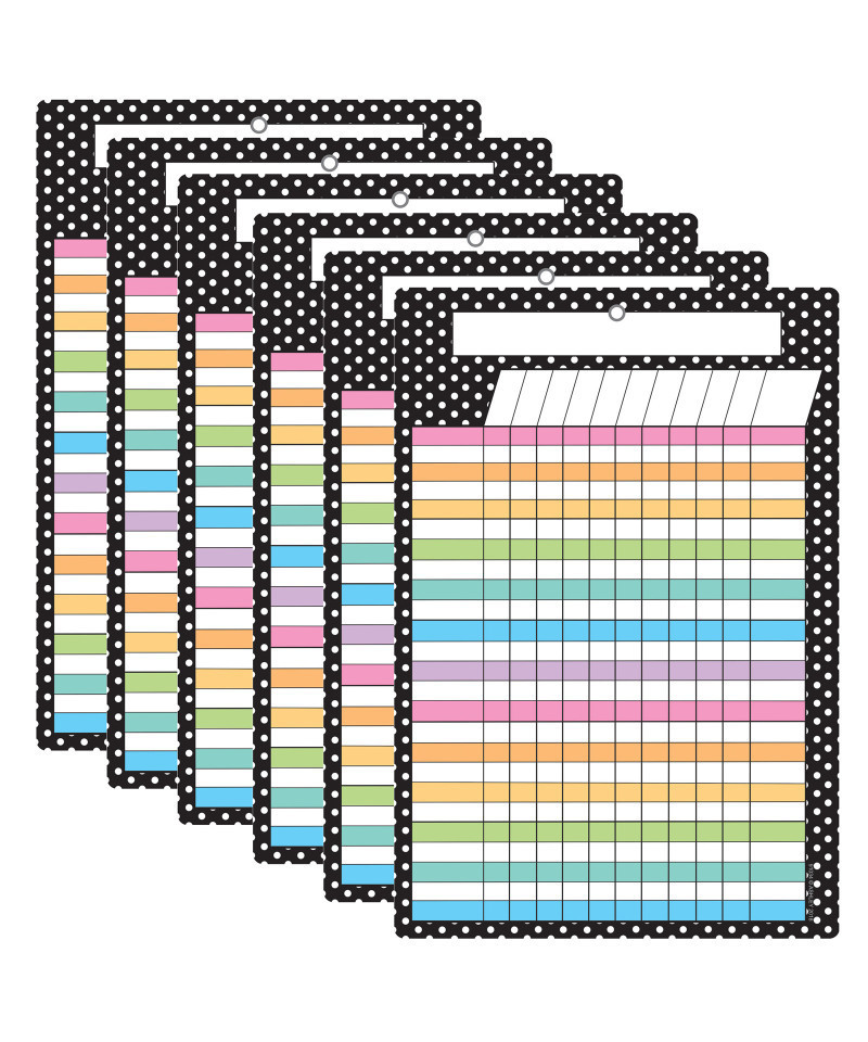 Ashley Productions® Smart Poly Chart, 13" x 19", B&W Polka Dots Incentive, w/Grommet, Pack of 6