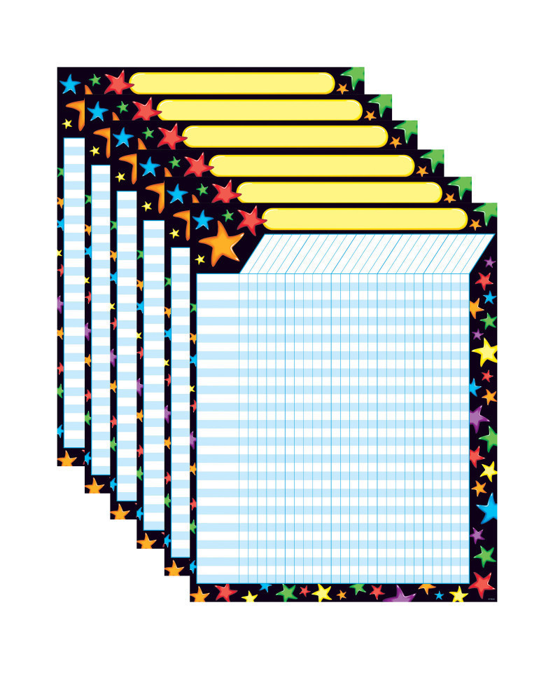 Spark excitement for setting goals, tracking progress, celebrating success. Great for schools, homes, and offices. Add stickers to add fun! Each chart measures 17" x 22". Charts feature 36 rows and 25 columns, enough room for the entire class. Sturdy and durable. Coordinate with a variety of TREND products. Ideas, activities, and reproducibles on back. Sold as a pack of 6 incentive charts.