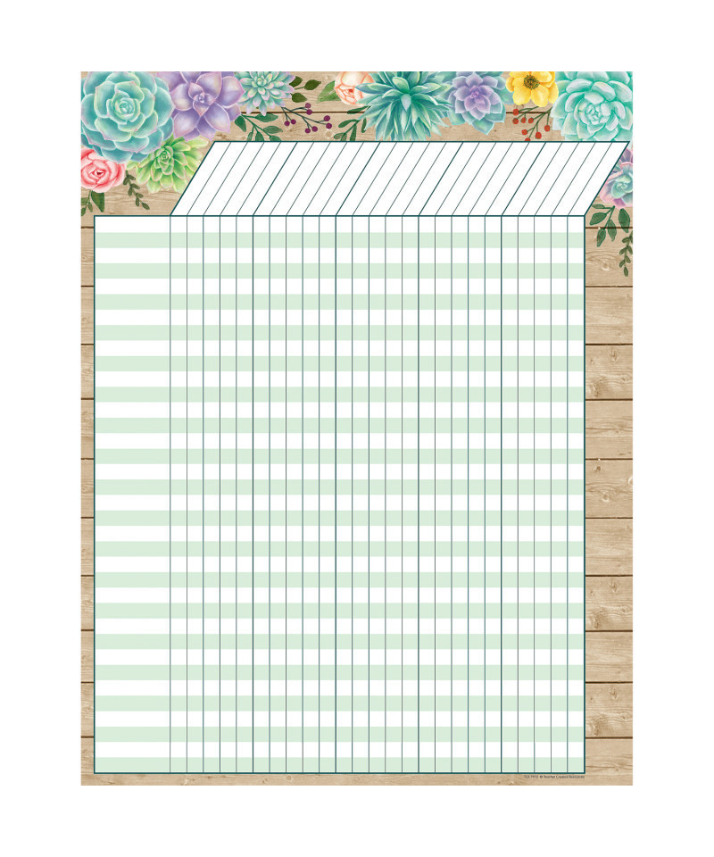 Encourage and motivate students with this quaint floral incentive chart to help them track their progress. Related lessons and activities are provided on the back of every chart. Chart measures 17" x 22".