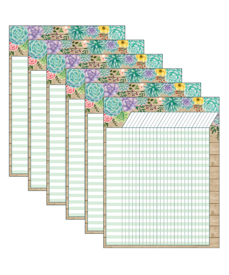 Encourage and motivate students with this quaint floral incentive chart to help them track their progress. Related lessons and activities are provided on the back of every chart. Chart measures 17" x 22". Sold as a pack of 6 charts.