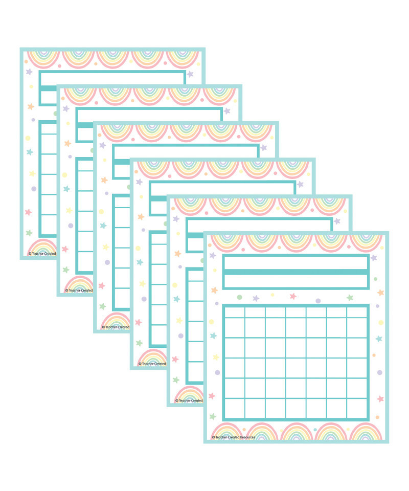 These charts have 7 columns to accommodate all 7 days of the week! Longer spaces for headings accommodate longer names for children and their tasks. Measures approximately 5-1/4" x 6". Each pack includes 36 sheets. Sold as 6 packs for a total of 216 incentive charts.