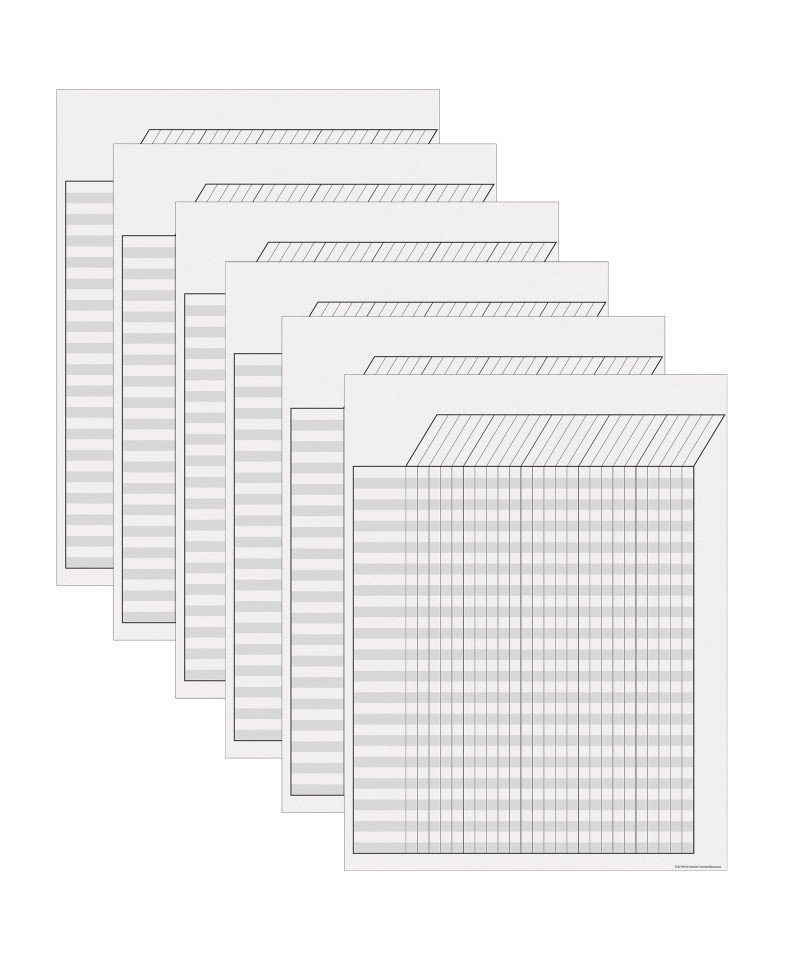 These incentive charts are a great way to motivate students and perfect for tracking homework, attendance, goals, and more. Each chart features 25 columns to accommodate 5 weeks and 36 rows to track an entire classroom roster. The smooth, durable write-on/wipe-off surface is perfect for writing on and is easy to wipe down or spray with disinfectant to help prevent the spread of germs. Slightly rounded corners with UV coating on the front. Measures 17" x 22". Sold as a pack of 6 charts.