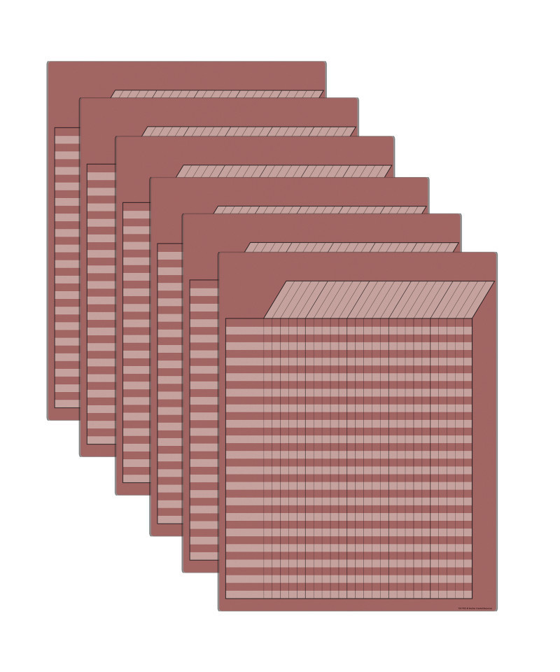 These incentive charts are a great way to motivate students and perfect for tracking homework, attendance, goals, and more. Each chart features 25 columns to accommodate 5 weeks and 36 rows to track an entire classroom roster. The smooth, durable write-on/wipe-off surface is perfect for writing on and is easy to wipe down or spray with disinfectant to help prevent the spread of germs. Slightly rounded corners with UV coating on the front. Measures 17" x 22". Sold as a pack of 6 charts.