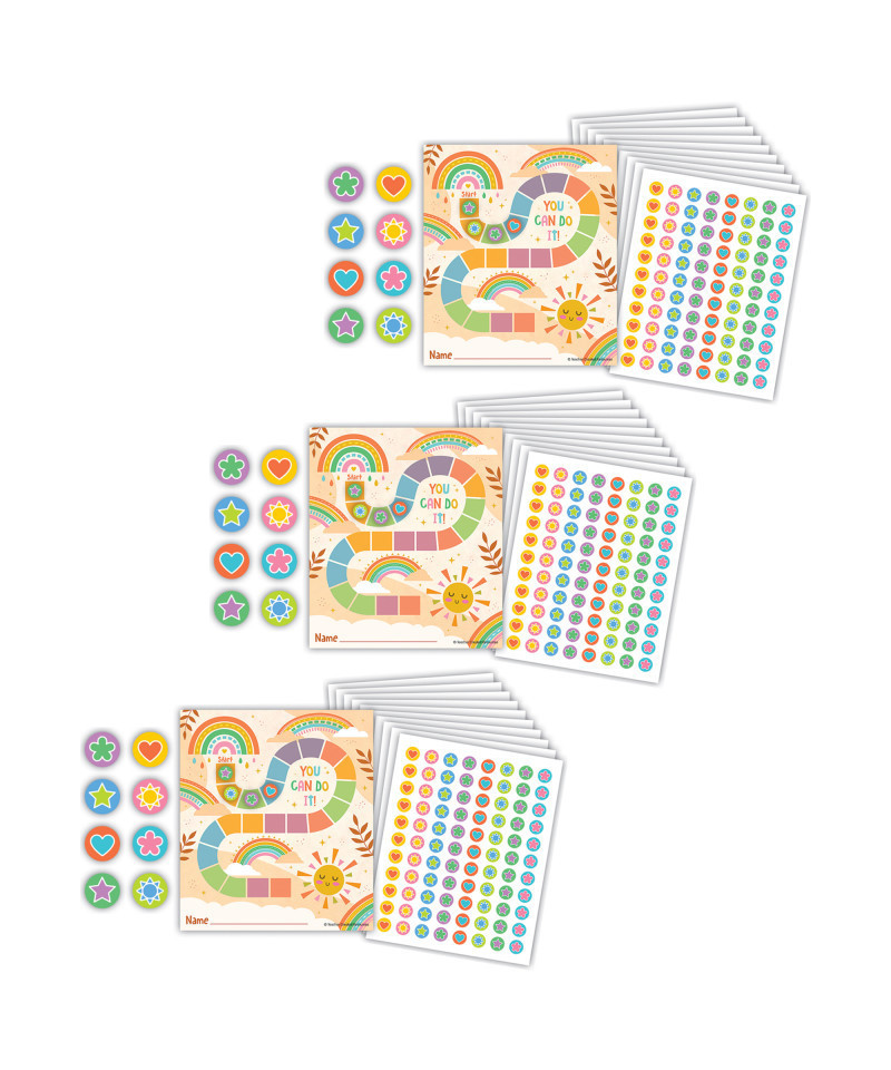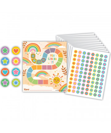 Motivate students and celebrate their progress with these engaging reward trackers. Each reward tracker measures 5-1/4" x 6", while the mini stickers are approximately 3/8" in diameter, perfectly sized for marking accomplishments. The stickers are both acid-free and lignin-free, ensuring a safe and long-lasting addition to any classroom or home setting. These reward trackers are a fun and effective way to inspire students to reach their goals. Each set includes 36 vibrant charts and 880 mini stickers, making it easy to track achievements and encourage positive behavior. Sold as 3 packs for a total of 108 charts and 2640 stickers.
