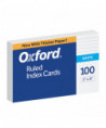 Oxford® Ruled Index Cards are a versatile study tool for students of all ages. Score points for neatness with our premium weight 5x8 cards with classic blue ruling. Perfect for lists, recipes or notes. Offer a stack to give homeschool and distance learners a break from screen time. Large 5x8 cards are ideal for early learners perfecting letter formation. Elementary students can color-in math facts or illustrate vocabulary or spelling words. Or take index cards outdoors for a fun interactive fresh air break. These large index cards are also great for higher level, detailed notetaking. Recent research suggests taking notes by hand may be better for retention and recall. Start early and help students build good notetaking habits. Index cards are the ultimate life hack for successful study, kindergarten through college! White. Measures 5" x 8". Each pack includes 100 cards.