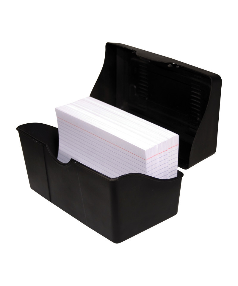 Store index cards and materials securely with this index card holder. Ideal for home and office use. Stackable design features built-in ridges keep cards standing.