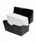 Store index cards and materials securely with this index card holder. Ideal for home and office use. Stackable design features built-in ridges keep cards standing.