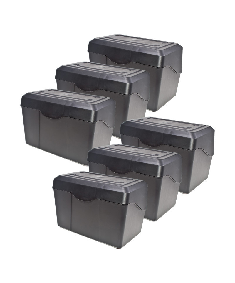 Store index cards and materials securely with this index card holder. Ideal for home and office use. Stackable design features built-in ridges keep cards standing. Sold as a pack of 6 index card holders.
