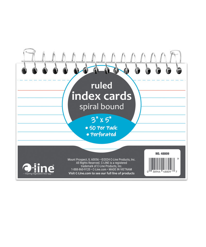 Keep your notes and lists organized in one convenient, portable notebook. A must have for Back-to-School. Cards are lined on the front, blank on the back, and perforated for easy removal. This index card notebook is great for flash cards, recipes, to-do lists and more! Perfect for home, school, and business. Each notebook includes 50 cards.
