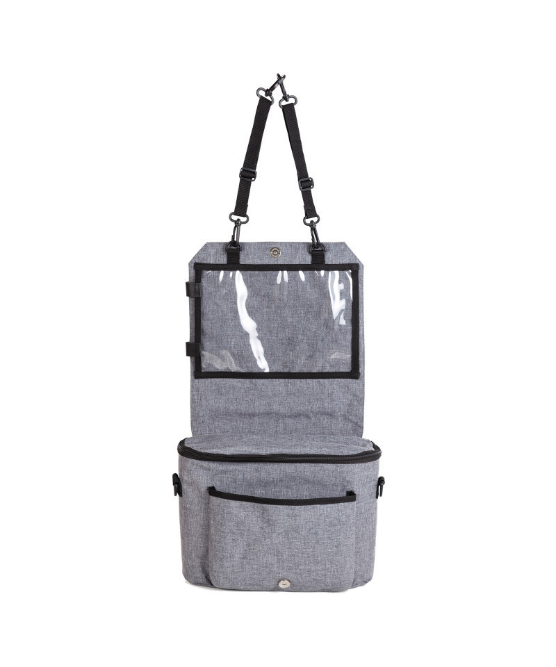- Serves as a car organizer, stroller bag, and shoulder tote Tech-friendly, designated electronic device pocket suitable for tablets/phones/media players with touch-sensitive plastic window for viewing and device control