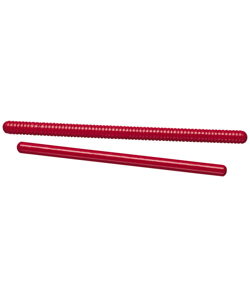 This pair of wooden rhythm sticks has one 12" ridged stick and one 10" smooth one for all sorts of rhythmic music-making. 2 sticks per set. Sold as 3 sets for a total of 6 sticks.