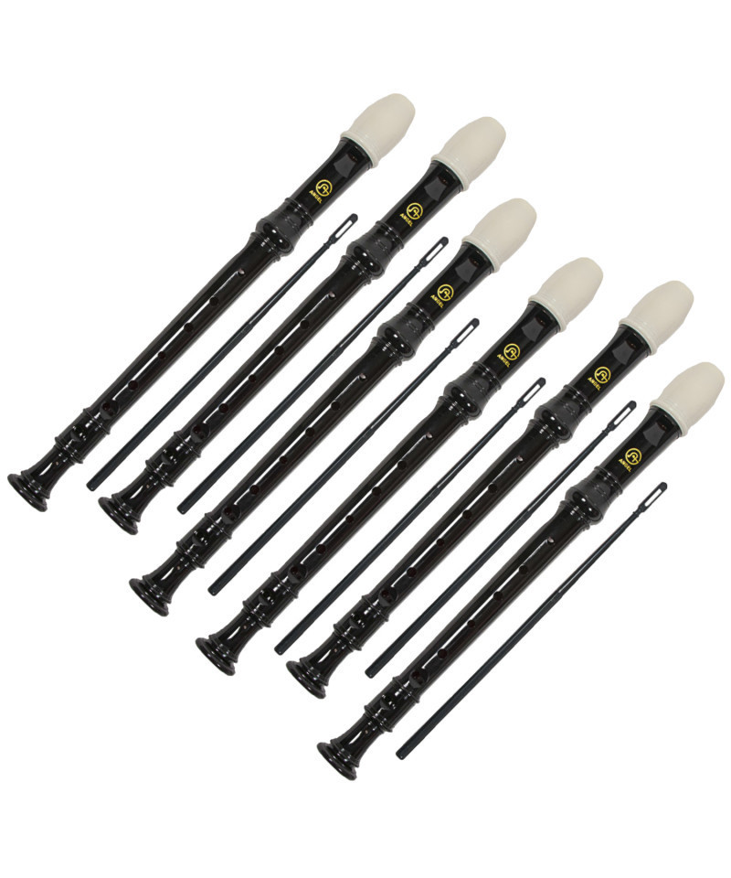 The Angel 101 Soprano recorder has a beautiful tone and comes with bag, cleaning rod, and finger chart. Constructed of ABS resin, this recorder is well-made and durable. Meant for students and designed to be easy to play, it produces a strong, clear sound. Includes bag, cleaning rod and Baroque fingering chart. Sold as a pack of 6 recorders.