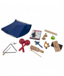 Shake, rattle and make some music! This bag of rhythm instruments allows the entire family to get involved in the joy of making music. Makes a great gift! One Pair of Maracas, One 6" Triangle, One Pair of Sand Blocks, One Guiro Crow Sounder with Mallet, One Pair of 8" Rhythm Sticks, One Cluster Bell, One Finger Castanet, One Pair of Finger Cymbals, One Instructional DVD, One Drawstring Bag. Instruments for nine players.