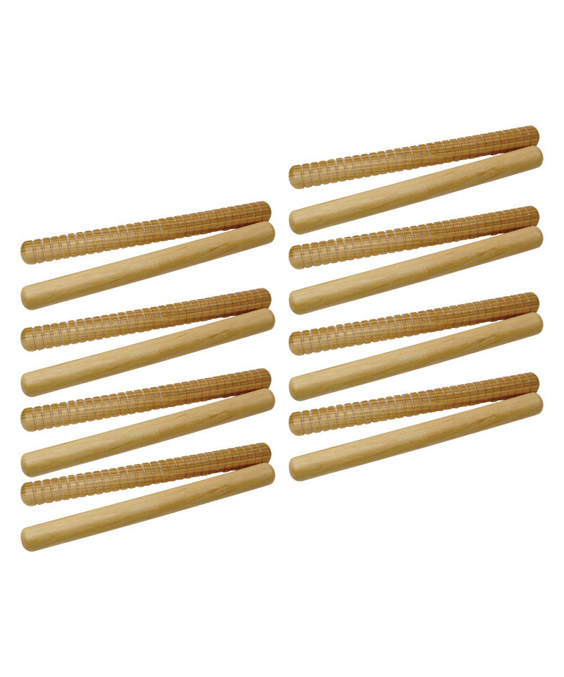 Combination rhythm sticks, perfect for early childhood use. Includes one smooth and one ridged stick per pair. Made of American hickory with a natural finish. Sold in pack of 12 Pairs.