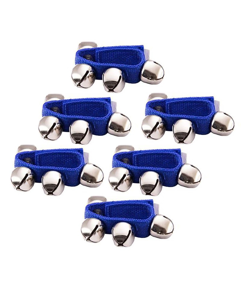 The Westco Wrist Bells feature four sleigh bells that are securely attached to a blue nylon wrist strap. The strap opens and closes easily with the included color matched Velcro. Attach these to your wrist and move about to create bright sleigh bell sounds for the classroom! Sold as a pack of 6 wrist bells.