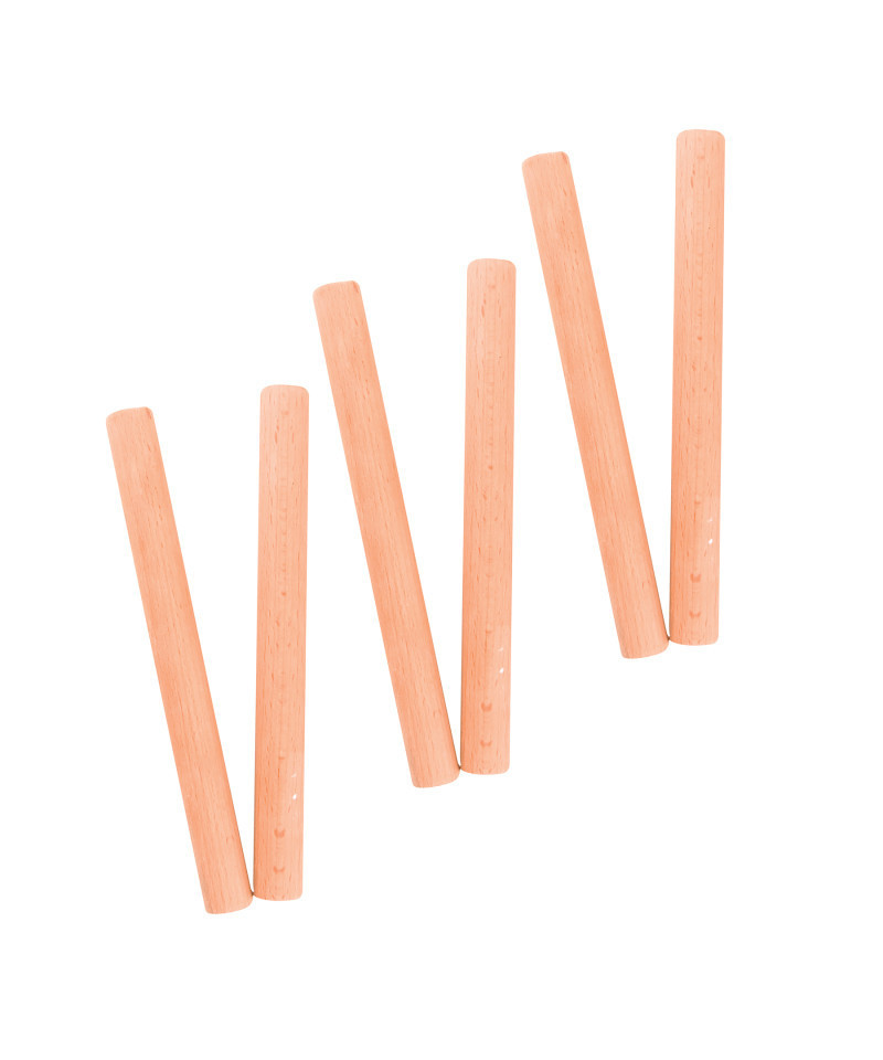 These Westco claves produce a light, bright sound when hit together and are easily played by children and adults alike. Made of wood for a light, bright sound. Measures 8" x 1/2". Sold as a pack of 3 pairs.