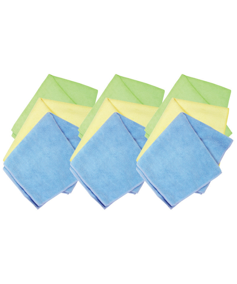 Multi-pack, multi-purpose microfiber towels are great for cleaning, dusting, and detailing. When dry, these cloths can polish shine and clean with an electrostatic nature. When damp, it can clean without chemicals, leaving a lint free and streak free surface. Each pack includes 3 towels in 3 colors measuring 14" x 14". Sold as 3 packs for a total of 9 towels.