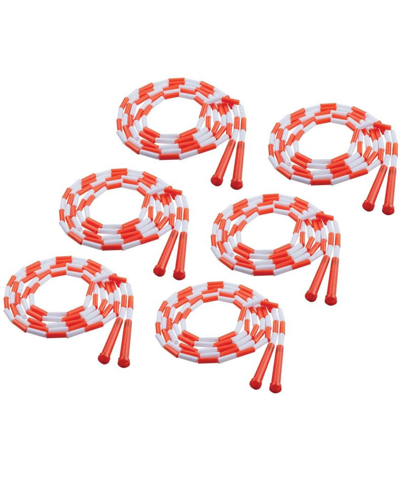 The Champion Sports Segmented Jump Rope provides a fun recreational or P.E. activity for kids, and great cardiovascular and fitness benefits for adults! The sound of the beads hitting the floor helps teach rhythm, and these ropes are available in a variety of lengths to accommodate all jumpers. Plastic segmented. Size: 10'. Orange/White. Sold as a pack of 6 Jump ropes.