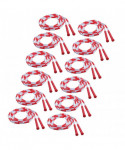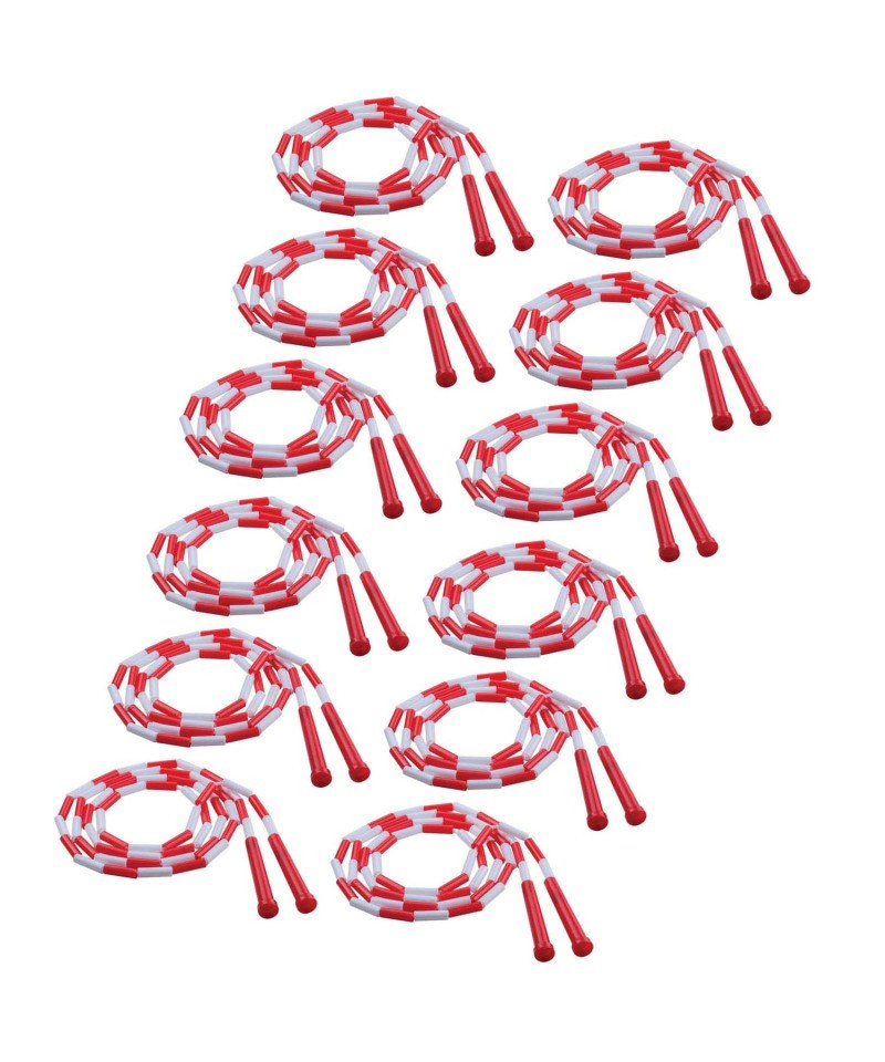The Champion Sports Segmented Jump Rope provides a fun recreational or P.E. activity for kids, and great cardiovascular and fitness benefits for adults! The sound of the beads hitting the floor helps teach rhythm, and these ropes are available in a variety of lengths to accommodate all jumpers. Plastic segmented. Size: 7'. Red/White. Sold as a pack of 12 Jump ropes.