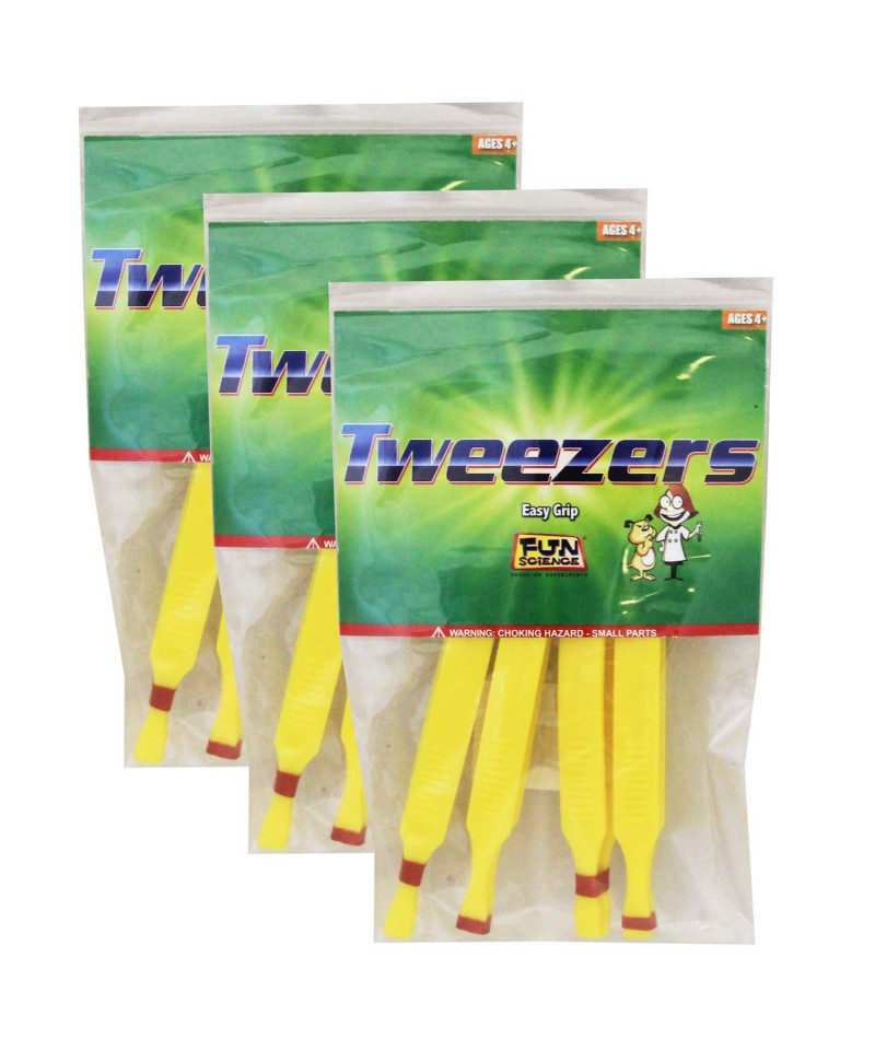 These blunt plastic tweezers are sturdy and easy to grip. Let your students use these tweezers to help improve and develop dexterity and fine motor skills. Great for small hands to manipulate. These Tweezers are a great addition to the Science Accessories section of your Science Center. 4 yellow blunt tip plastic tweezers in a pack. Sold as 3 packs for a total of 12 pairs of tweezers.