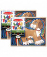 - Practice lacing skills with wooden animal-shaped lacing panels and colorful cords