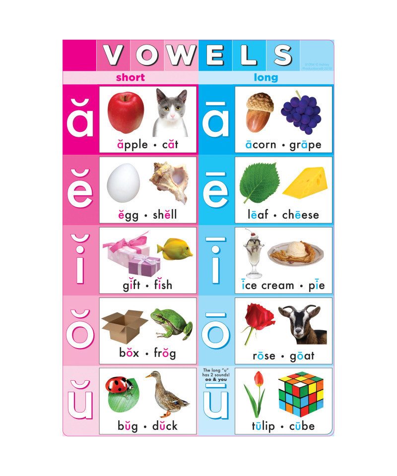 Ashley Productions® Smart Poly® Chart Vowels, 13" x 19"