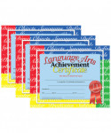 Language Arts Achievement Certificate features a colorful design that is printed in full color on high quality paper. These Hayes certificates are great to honor student who have outstanding achievement in language arts class. Teachers and administrators can give these out at end of the school year parties and award ceremonies. These LA achievement awards can be personalized with the student's name and other information pertaining to the award. The certificates can be handwritten or printed by using a downloadable template. Measures 8.5" x 11". Each pack includes 30 certificates. Sold as 3 packs for a total of 90 certificates.