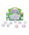 Sentence cubes contain 9 parts of speech cubes for sentence building. Each cube is color-coded according to its part of speech. Roll cubes to generate random sentences and practice putting words together in the correct order. Contains 9 six sided cubes, with each face representing different words. Ages 5+. Teaches kids how to build sentences.