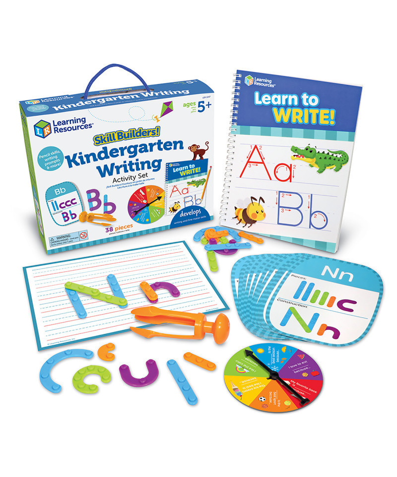 Play your way to kindergarten-ready spelling and language skills! Set your kids on the path to school success with the fun, quick writing activities found in the Skill Builders! Kindergarten Writing activity set from Learning Resources. This 38-piece set comes with all of the hands-on activities needed to help kids learn and retain essential language and writing skills; build hands-on pencil skills with the Tri-Grip Tongs, visualize spelling with tracing and letter construction play, put new vocabulary to the test with writing prompts, and more! Designed with all kinds of spelling, language, and writing skills in mind, Skill Builders! Kindergarten Writing is a versatile way to learn; whether you're looking for homeschool supplies or teacher supplies for classroom instruction, this set has the fun, active play you need! This set can even function as inspiration for self-correcting ESL exercises! Skill Builders! Kindergarten Writing also comes with a built-in carrying case, so you can build your early spelling and language skills on the go!