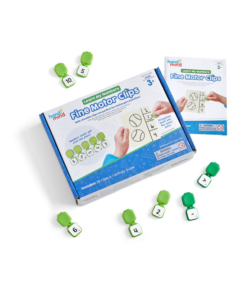 These one-of-a-kind clips are designed with little hands in mind. They help children strengthen and refine their fine motor skills at the same time they're learning number recognition, counting, and other early math skills. Durable, ergonomic design helps with fine motor development. Easy-to-read numbers twist so you can use the clips in any orientation. Includes 38 clips and 1 activity guide.
