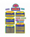 Teach your students about the different parts of speech with a 22 piece Eureka Bulletin Board Set. Each 22-piece set is packaged as 6 panels including: 9 Parts of Speech Die-Cut Signs, 3 Piece Header, 9 Mini Signs, and 1 Teacher's Resource Guide.