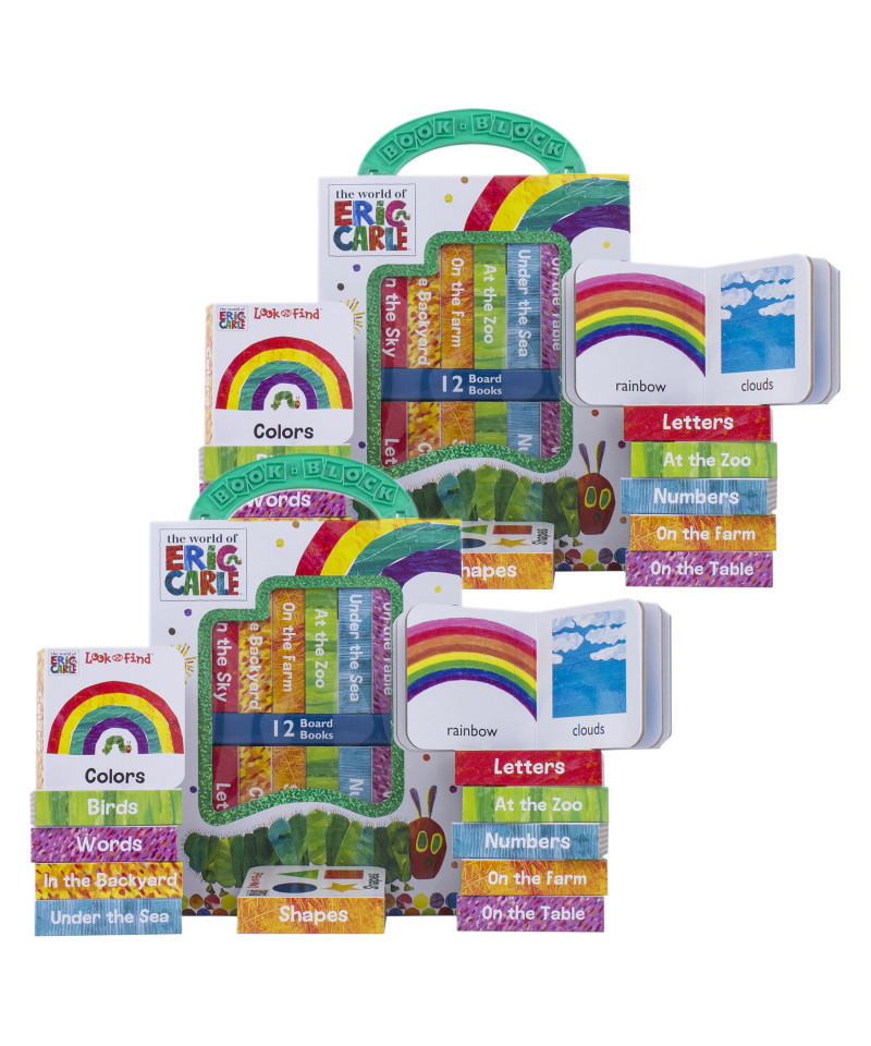 Look, find, and learn with the Very Hungry Caterpillar! Each take-along library includes 12 sturdy little board books featuring classic Eric Carle art. Six "Look and Find" titles let little ones search the pages for hidden objects. Six "Here, There, and Everywhere" titles explore concepts like numbers, letters, colors, and shapes. It's a perfect first reading experience for little ones who are "hungry" for fun! Sold as 2 identical sets for a total of 24 books.