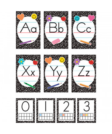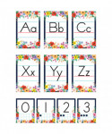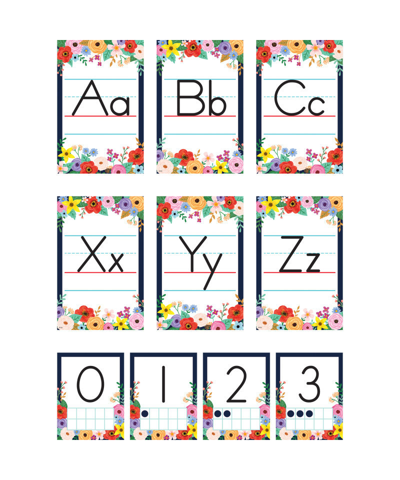 The flourishing design and bold hues of this bulletin board will make learning the alphabet and numbers fun! Alphabet cards feature upper and lower case letters—each measure 5-1/2" x 8-1/2". Number cards range from 0-10 and use dots to depict the number amount—each measure 4-1/4" x 5-1/2".