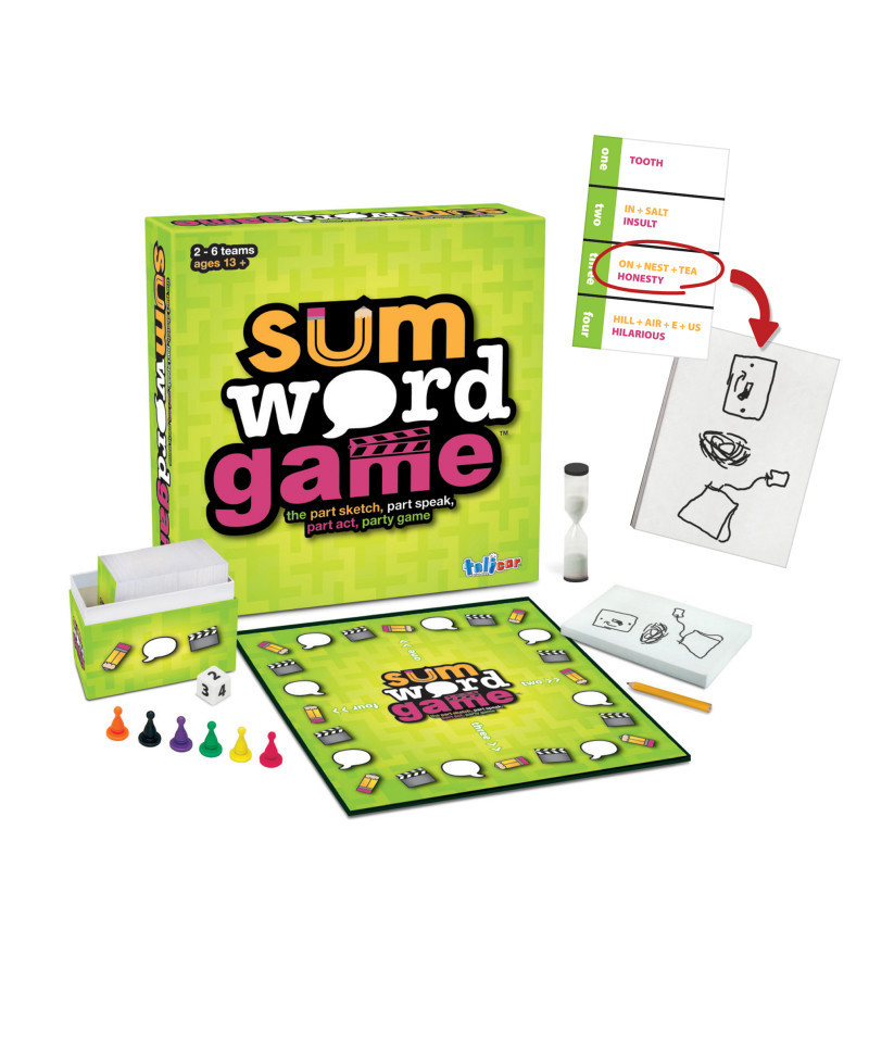 The party will be roaring as players "sum" up the 1-2-3 or 4 part(s) of a word by Sketching, Speaking or Acting them out! It's the best part of all three communication worlds. Be the first team to SUM up 21 points and you win! For 2-6 teams, ages 13 & up.