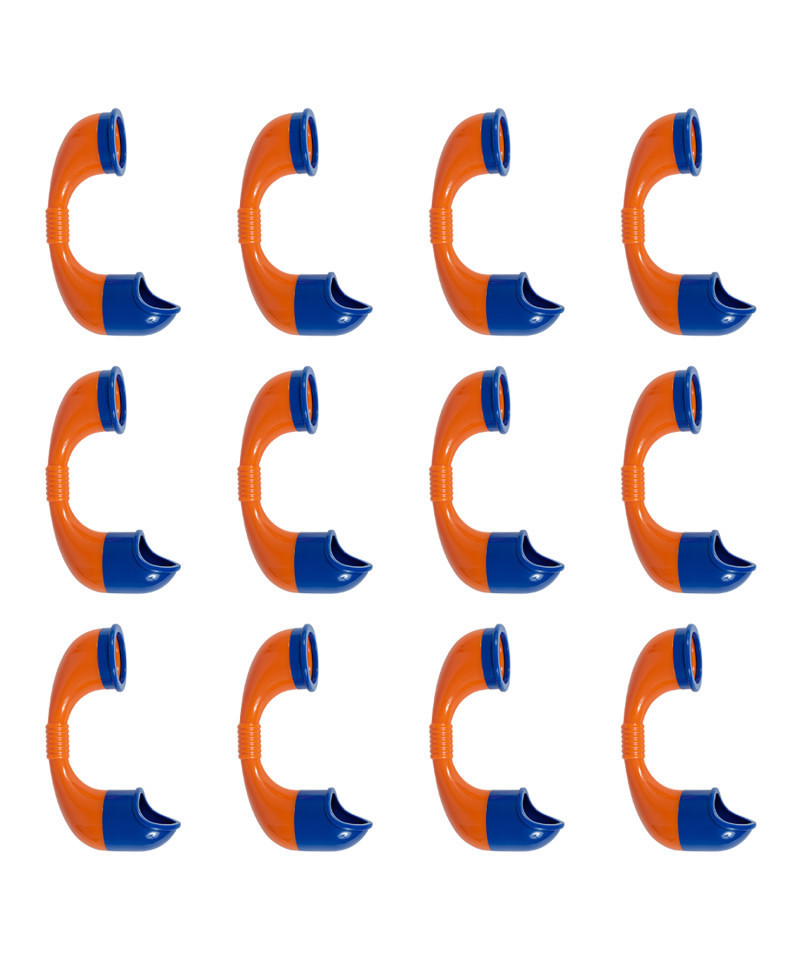 This set of 12 speak-and-listen phones allows children to practice speaking and reading with phonemic awareness. While speaking into one of these phones, the user's voice is directly funneled into his or her own ear. Use them in group speech lessons. Explore articulation, fluency, phonetic sounds and more. These phones can help to build confidence while reading and pronouncing words. They can also help children learn to speak at an appropriate volume. Made from durable plastic, these phones are designed to last for years of home or classroom use. And children will love the vibrant orange and blue colors. For ages 18m+. Size: 6.5"L x 4"W.
