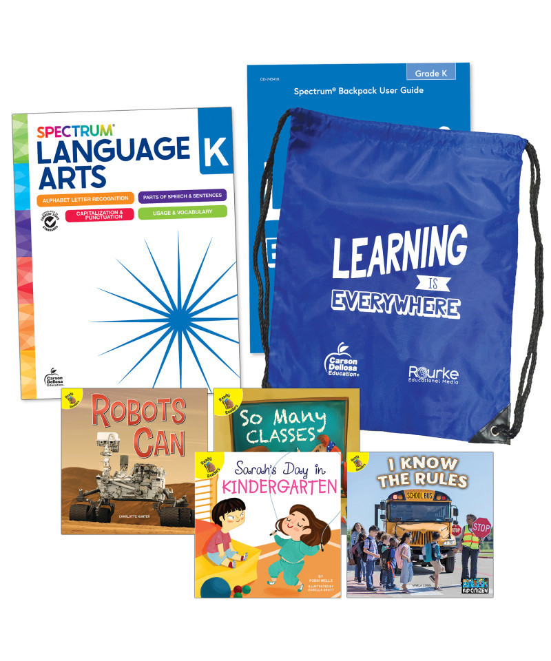 Provide a spectrum of literacy support for your kindergartener with the Spectrum Kindergarten Language and Literacy Backpack! This Kindergarten Phonics Bundle features four sight word books and a language arts workbook. The kindergarten workbook features parent support pages at the beginning of each chapter with helpful definitions, tools and tips, and a skills list to provide a spectrum of support for your leaner. QR codes are also included throughout the language arts workbook that take you to free video tutorials to help explain and break down certain concepts. An answer key is included in the back of the workbook to track your child's progress and accuracy. The bundle of early readers features both nonfiction and fiction children's books for a variety of reading opportunities. The bundle is stored securely in the durable drawstring bag so your child can read and practice skills while on the go!
