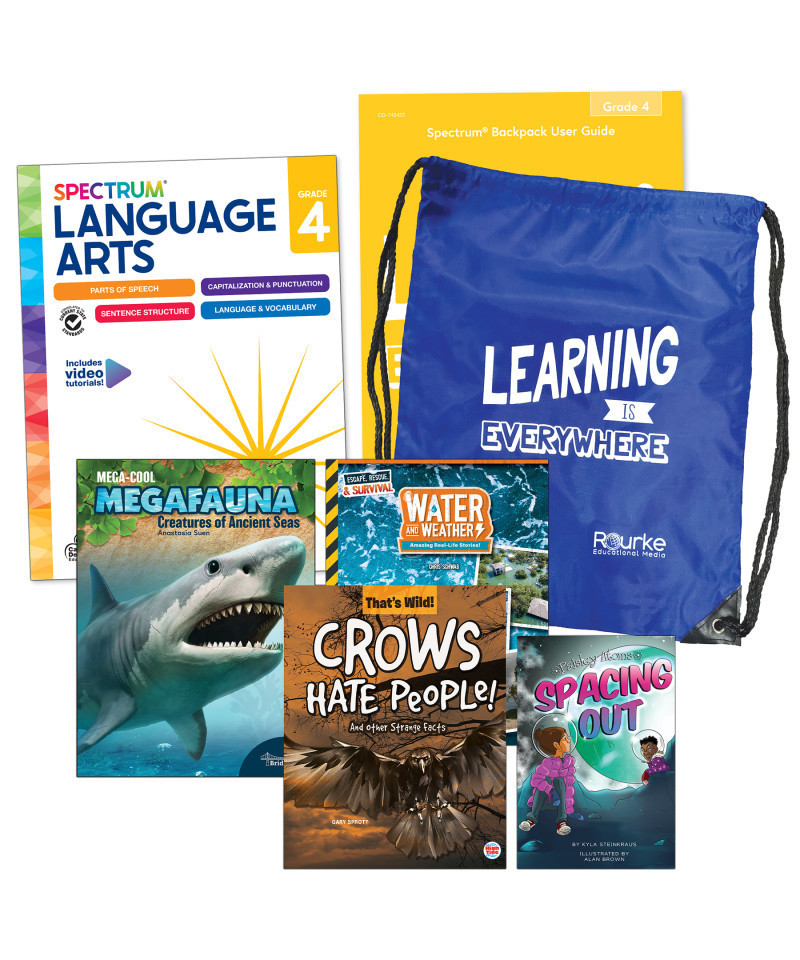 Provide a spectrum of literacy support for your 4th grade student with the Spectrum Grade 4 Language and Literacy Backpack! This ELA & Reading Comprehension Grade 4 Bundle features four 4th grade reading books and a language arts 4th grade workbook. The 4th grade workbook features parent support pages at the beginning of each chapter with helpful definitions, tools and tips, and a skills list to provide a spectrum of support for your leaner. QR codes are also included throughout the language arts workbook that take you to free video tutorials to help explain and break down certain concepts. An answer key is included in the back of the workbook to track your child's progress and accuracy. The bundle of 4th grade books features both nonfiction and fiction children's books for a variety of reading opportunities. The bundle is stored securely in the durable drawstring bag so your child can read and practice skills while on the go!